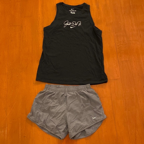 Nike shorts and tank set gray kids large size shorts and black adult XS