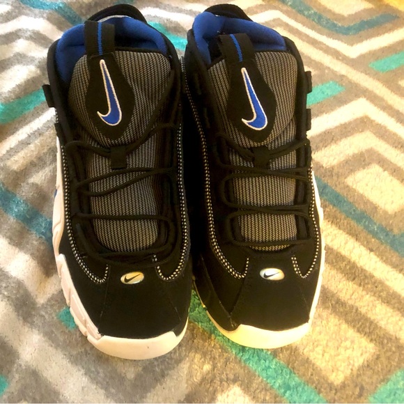 Fairly new nike pennys, black, white and blue trimming.