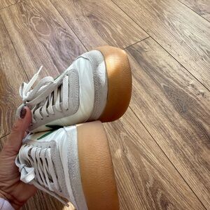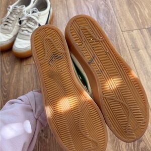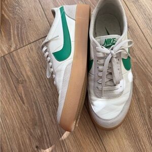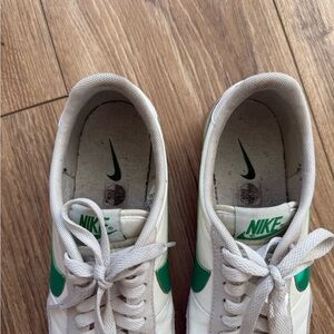 Nike sneakers with a sleek white design and vibrant green accents. Ideal for everyday style. Worn a few times still great condition!