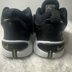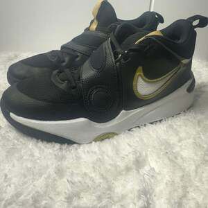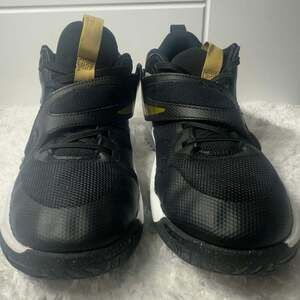 Nike black and gold sneakers, size 7, designed for optimal comfort and stability. These shoes are in excellent pre-owned condition with minimal signs of wear. Perfect for athletic activities or casual wear. Made in India.