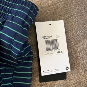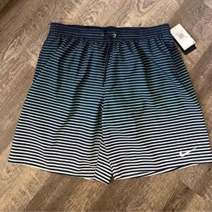 This listing is for a pair of NWT's Nike 9" stripe breaker swim trunks in size XXL, in color blue/green stripe.