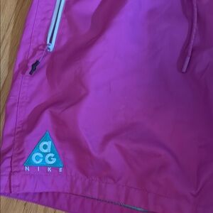 Bold fuchsia Nike ACG shorts. Features drawstring waist and zip pockets. Brand new condition.