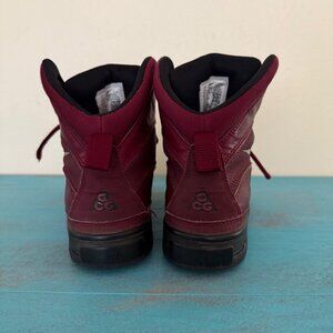 Designed for outdoor performance and winter conditions, these Nike ACG boots combine durability with comfort. The burgundy leather adds a stylish touch to rugged functionality.