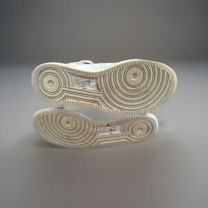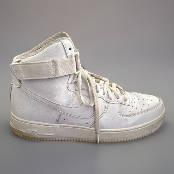 Step up your game with these Nike Air Force 1 Mid sneakers. These shoes feature a mid-top design and lace-up closure for a comfortable fit. The Nike branding make these perfect for any outfit or occasion, whether it's for casual wear or activewear. With a US shoe size of 12, these sneakers are perfect for men. The Nike Air product line ensures a comfortable and supportive experience, making them suitable for any season. Get ready to elevate your sneaker collection with these Nike AF1 Mid High Tops in white. They have some wear and there is a blemish on one of the holes in the front of left shoe as shown on pics. They need cleaning as shown on pics.