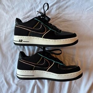 Nike size 4Y or women’s 5.5- pink volt colorway. I added glittery laces for fun! black sneakers, glitter laces, toddler shoes, kids sneakers, casual footwear, athletic style, sporty sneakers, black and pink, youthful footwear, comfortable kicks!
