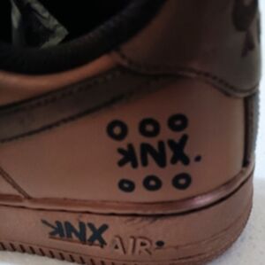 Elevate your look with these Nike AF-1 sneakers. Metallic Gold Custom finish adds a modern touch. Perfect for casual wear.