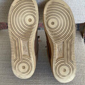Brown air force ones, men’s sneaker size 10.5. Worn but in good condition. Inner fabric has several wear spots. Smoke-free and pet-free home. Style number AV 4113-200