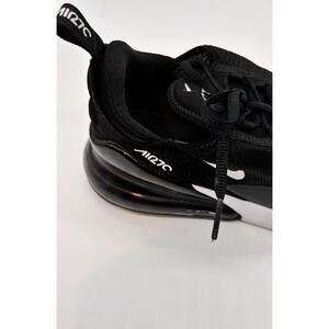 Nike Air Max 270 Men's Athletic Shoes in size 11, featuring a lace-up closure and low-top style. These black sneakers are designed for comfort and performance, suitable for various activities like walking, cycling, hiking, and running. The shoes have a breathable synthetic upper material, foam insole, and synthetic lining. Perfect for casual wear, workwear, or activewear in any season.