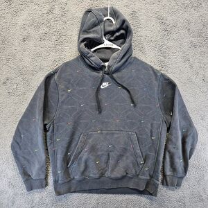 Nike AOP Gel Fleece Black Pullover Hoodie Mens Medium DM7930 010 Center Swoosh