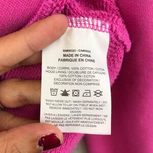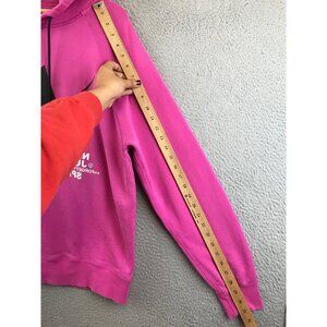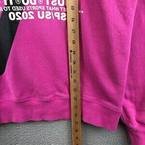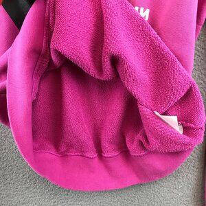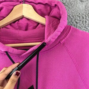 This Nike Sports hoodie offers comfort and style for casual wear. The pink fabric is complemented by a striking black logo, suitable for various settings.