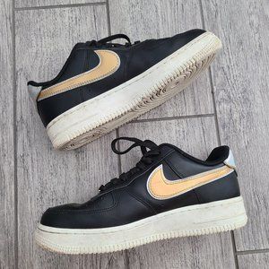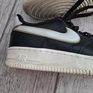 Nike Air Air Force 1 women's sneakers black white and gold size 7