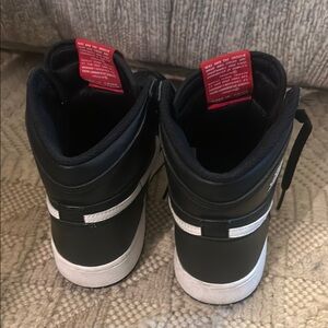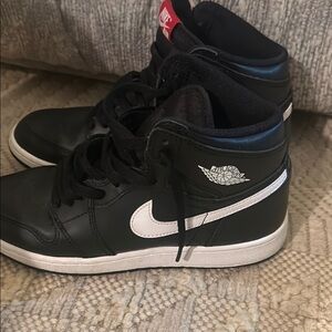 Stylish black high-top sneakers with red Nike Air logo. Perfect for casual wear. Used size 6.5