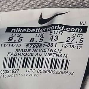 These Nike Air Flight 2012 sneakers offer a comfortable fit with a high-top design, providing ankle support. The striking black and blue colorway adds a stylish touch, while the iconic Nike branding ensures a classic look. Ideal for casual wear or athletic activities, these shoes combine fashion with functionality.