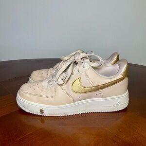 Nike Air Force 1 ’07 Beige & Gold Metallic Swoosh - Size 8