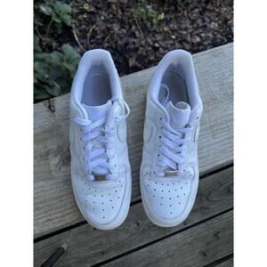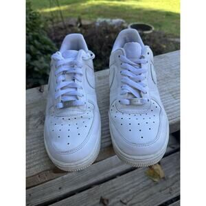 The Nike Air Force 1 ‘07 Low Triple White Men's Sneakers in size 8.5 is a stylish and iconic retro shoe that features a low top design with a classic white colorway. This shoe is part of the Nike Air product line and is known for its comfort and performance, making it a popular choice for athletic activities like basketball. With its medium width and medium fit, these sneakers are perfect for everyday wear and can easily be paired with a variety of outfits. The Nike Air Force 1 is a timeless sneaker that combines style and functionality, making it a must-have for any sneaker enthusiast. Check pictures for flaws. No box.