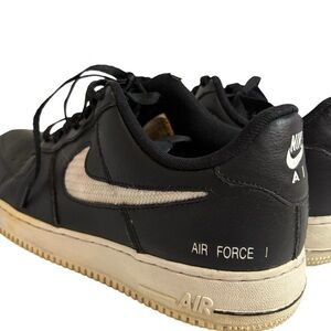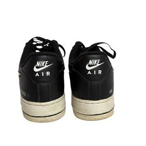 Step up your sneaker game with these Nike Air Force 1 Low in a sleek black and white colorway. These kicks feature a premium leather upper, a textured white cut out swoosh, and classic "Air Force 1" branding on the side. The off-white midsole gives them a vintage look, making them a standout addition to any collection.
