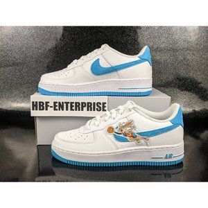 Nike Air Force 1 07 x Space Jam Low Hare Tune Squad White Blue Size 6Y Women 7.5