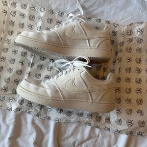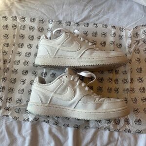 White Nike canvas trainers- great condition #NikeTrainers white, canvas, sneakers, athletic, casual, sporty, minimal, clean, versatile, streetwear
