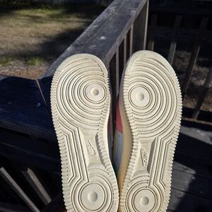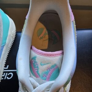Nike sneakers with multi color design. Easter egg embroidery. Suede will need light cleaning, no tears, minimal creases!