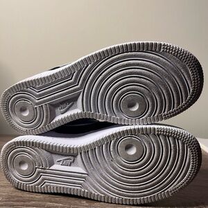 Air Force 1 Stylish black sneakers with a blue swoosh. Perfect for casual wear. These are very clean and only worn by our little girl about 5 times. Originally Customized on Nike .com