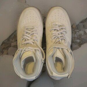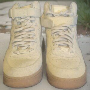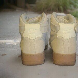 The Nike Air Force 1 Hi SE Hightop Shoe in Men's Size 9 is a stylish sneaker with a high top design, perfect for the summer, fall, and spring seasons. The light cream color and athletic style make it a versatile option for any casual outfit. With its iconic Nike Air Force 1 model and comfortable design, this shoe is a must-have for any sneaker collection.