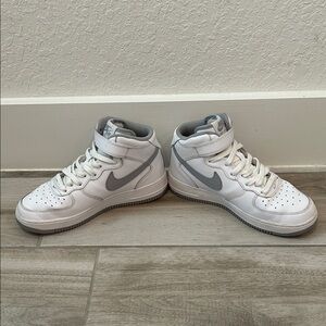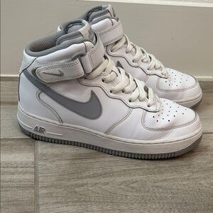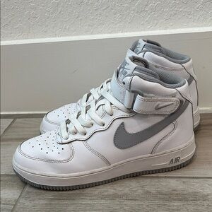 Nike Air Force 1 High Top Sneakers in White and Gray