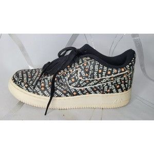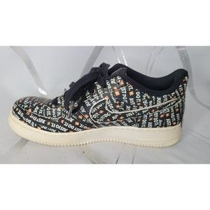 Nike Air Force 1 JUST DO IT Sneakers 7 Youth Childrens Black Lace Up Shoes