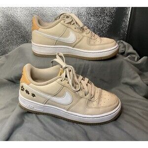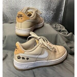 Nike Air Force 1 Low Flowers Sneakers Girls Beige Size 3Y Logo Low Top Comfort