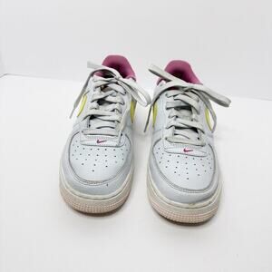 Nike Air Force 1 Low Gray Citron Fuschia Girls Sneakers Size 5.5Y