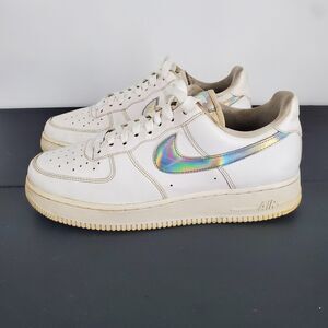 Nike Air Force 1 Low Shoes Womens Size 10 White Iridescent Swoosh CI1646-100