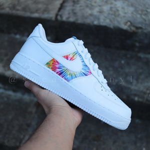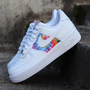 Nike Air Force 1 Low Tie Dye Custom NWT. These shoes are made to order. Please allow at least 7 days for shipping. These customs are made with a Tie Dye bandana, these customs have a hand made and hand stitched tongue tag. You can also check these shoes out at www.sneakervinyl.com