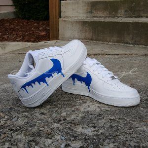 Nike Air Force 1 Low White Blue Paint Drip Custom NWT. These shoes are made to order. Please allow at least 3-5 days for shipping. Message me with any questions. You can also check these shoes out at www.sneakervinyl.com