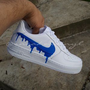Nike Air Force 1 Low White Blue Paint Drip Custom NWT. These shoes are made to order. Please allow at least 3-5 days for shipping. Message me with any questions. You can also check these shoes out at www.sneakervinyl.com