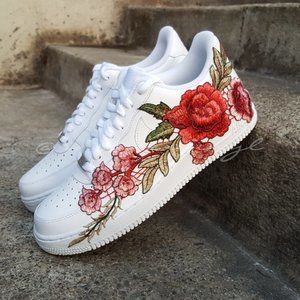 Nike Air Force 1 Low White Rose Embroidery Custom NWT. These shoes are made to order. Please allow at least 3-5 days for shipping. Message me with any questions. You can also check these shoes out on www.sneakervinyl.com