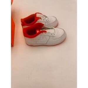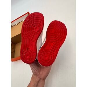 Classic white leather upper with signature Nike swoosh and bold red lining/outsoles for a timeless streetwear look. Perfect for everyday wear, school, or casual outings. Boys 9C. Fast Shipping