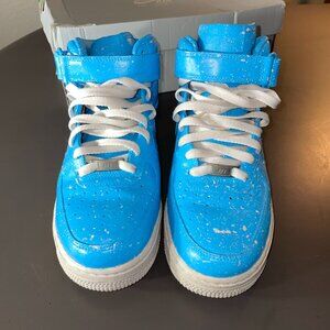 Nike Air Force 1 MID ‘07 Men’s Sz 8 Custom Blue Paint W/White Splatters 315123