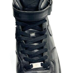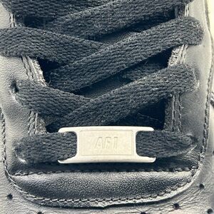 A metal jewel, debossed with ‘AF1’ lettering,’ is looped through the laces.
