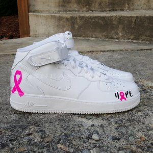 Nike Air Force 1 Mid White Pink "HOPE" Breast Cancer Awareness Custom NWT. Please allow at least 7 days for shipping. You can also check these shoes out at www.sneakervinyl.com