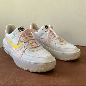 Nike | Air Force 1 PLT.AF.ORM Platform Sneakers in White Pearl Pink Opti Yellow