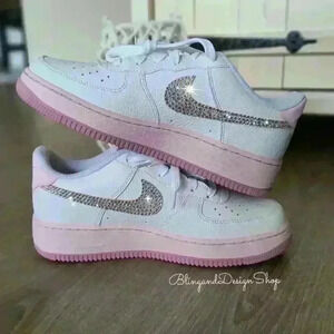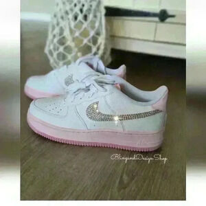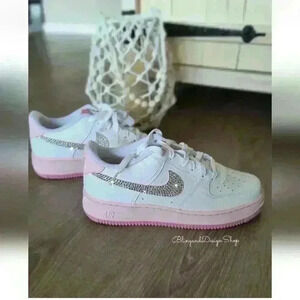 Nike Air Force 1 Pink White Girls Sneakers made with Swarovski Crystals