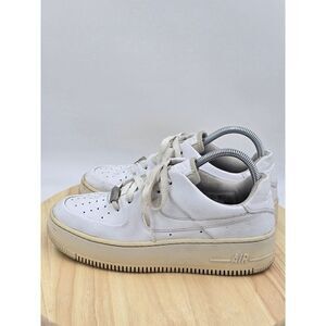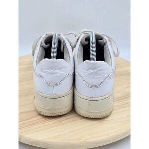 Nike Air Force 1 Sage Low Triple White SneakersWomens AR5339-100 Sz 9. In good pre-owned condition. Flaws-yellowing on edges of soles- some wear on bottom back soles- few scratches on toes see pictures above.