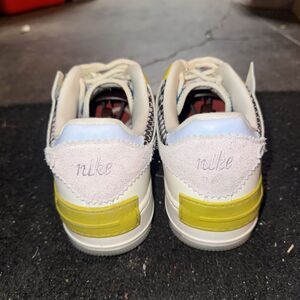 The Nike Air Force 1 Shadow Patchwork Hydrogen Blue in Women's size 11 (UK size 8.5, EU size 43) is a striking sneaker featuring a low-top shaft style and a vibrant multicolor patchwork pattern. Released in 2021, this athletic shoe from the Nike Air 1 line combines style and comfort with its standard shoe width and regular size fit. Perfect for women looking to make a statement with their footwear, this unique design is sure to stand out in any outfit.