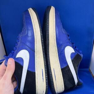 Elevate your sneaker game with these stylish Nike Air Force 1s. Featuring a vibrant blue leather upper paired with sleek black suede accents, these shoes are perfect for both casual and sporty looks. Key features include:- Iconic Nike branding - Durable construction for long-lasting wear- Comfortable cushioning for all-day support- Timeless design that complements various outfitsStep out in style and make a statement with these classic kicks!