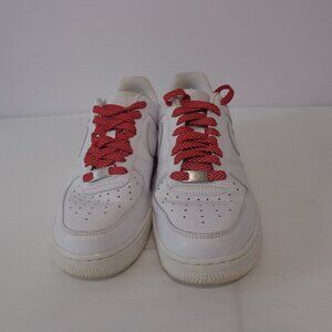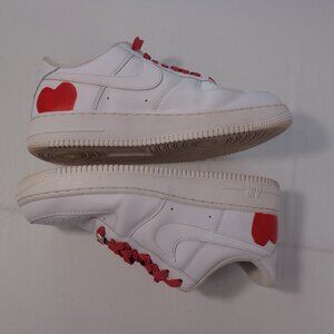 The Nike Air Force 1 White Sneakers with Hand Painted Heart DD8959-100 in Women's size 9.5 is a stylish and comfortable pair of casual sneakers perfect for activewear.