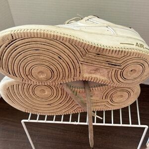 Classic Nike Air Force 1 with cream leather and burgundy accents. Size 7