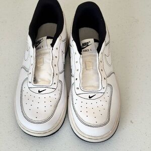 Nike Air Force 1 kids / youth size 2Y White Sneakers with black needs laces