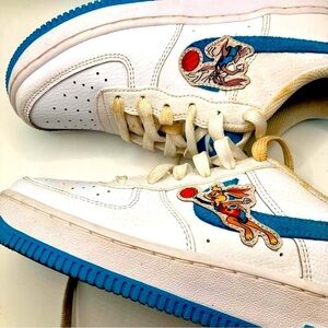 Nike Air Force 1 low Space Jam Hare, white and blue, kids 4.5 or women’s 6.5
