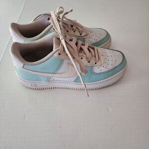 Nike Air Force 1 sneakers shoes girl sz 4 white teal laces