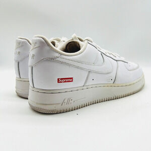 Nike Air Force 1 x Supreme Mens 10.5 White Leather Red Box Logo CU9225-100 Shoes