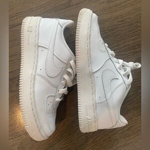 Nike Air Force 1s. All white. Size 5Y. Lightly worn. No box. Bought these for my wife 2 years ago (yes she wears kid size) she didn’t like the comfort of them and wore 2 or 3 time total